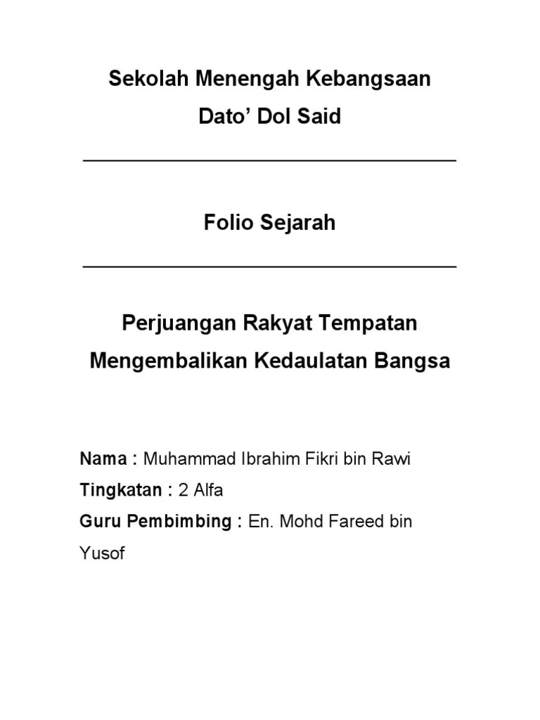 Sejarah tahun 5 perjuangan tokoh tempatan saya muhammad daniel kesimpulan folio sejarah. Contoh rumusan sejarah 2021 kesimpulan dan cadangan :